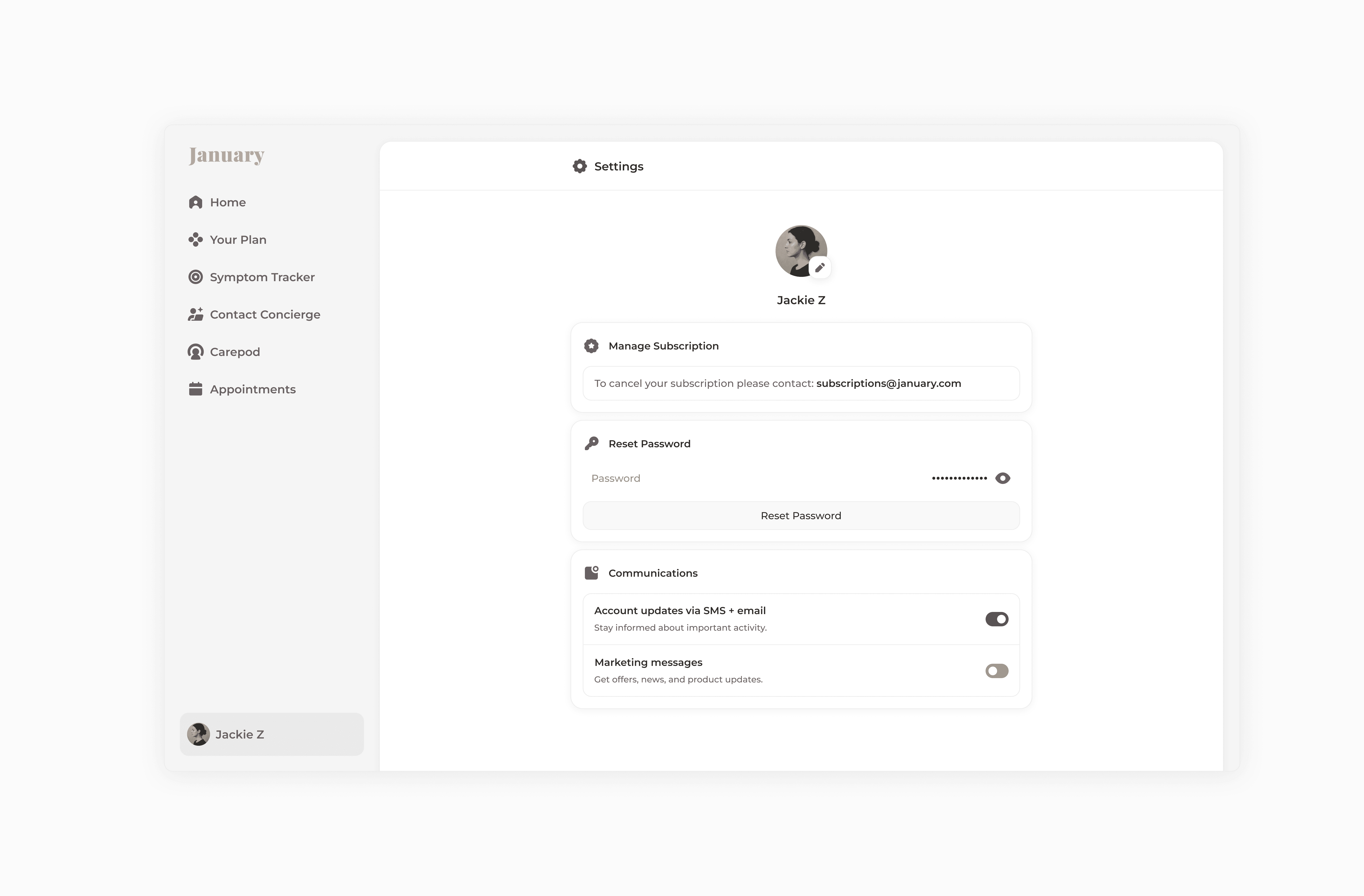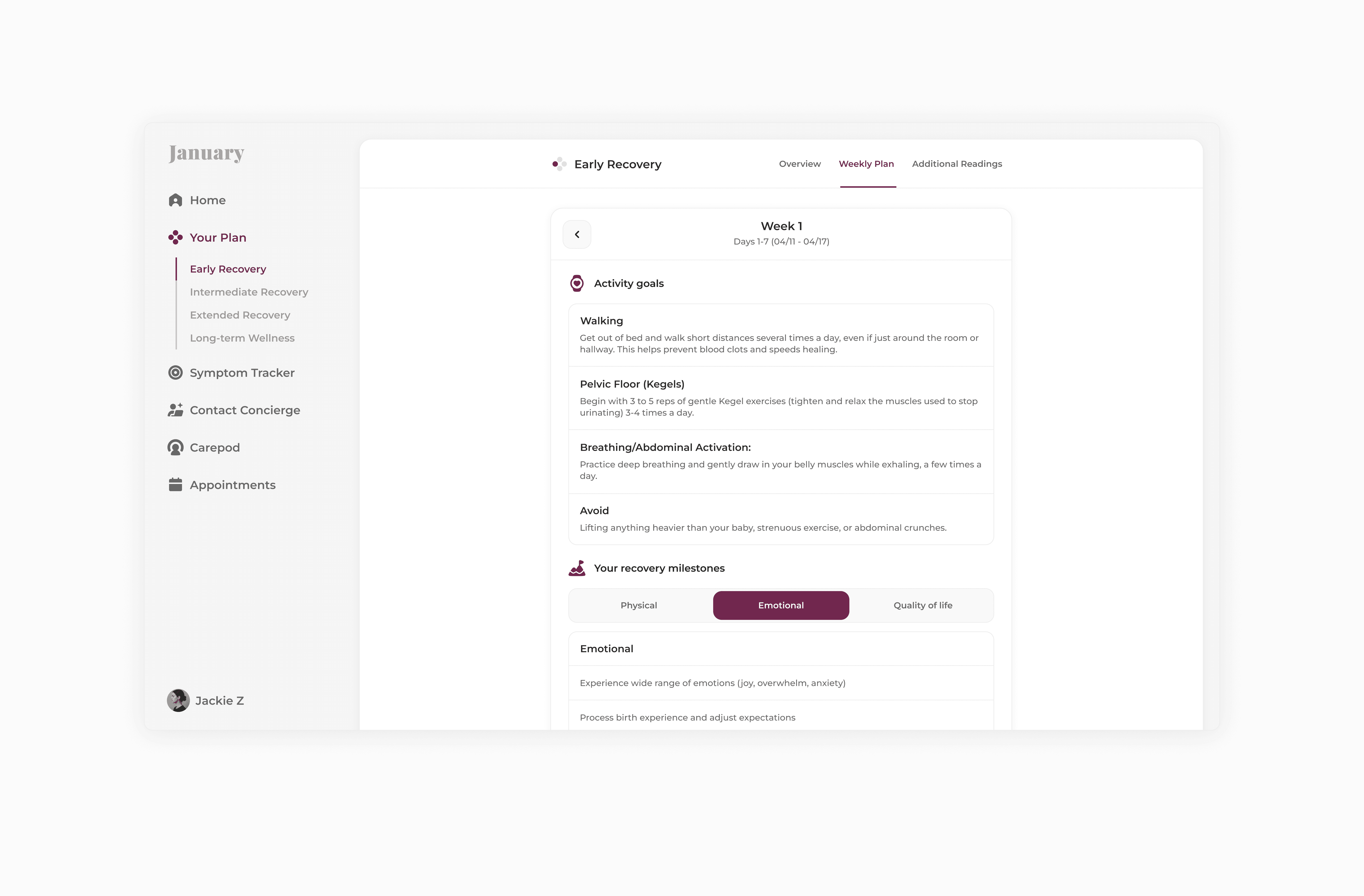 I led product design for January Health, a care platform built for postpartum recovery and perimenopause. Working directly with the founder, I designed the full MVP experience from the ground up. Concierge-level care, powered by AI, designed to feel human.